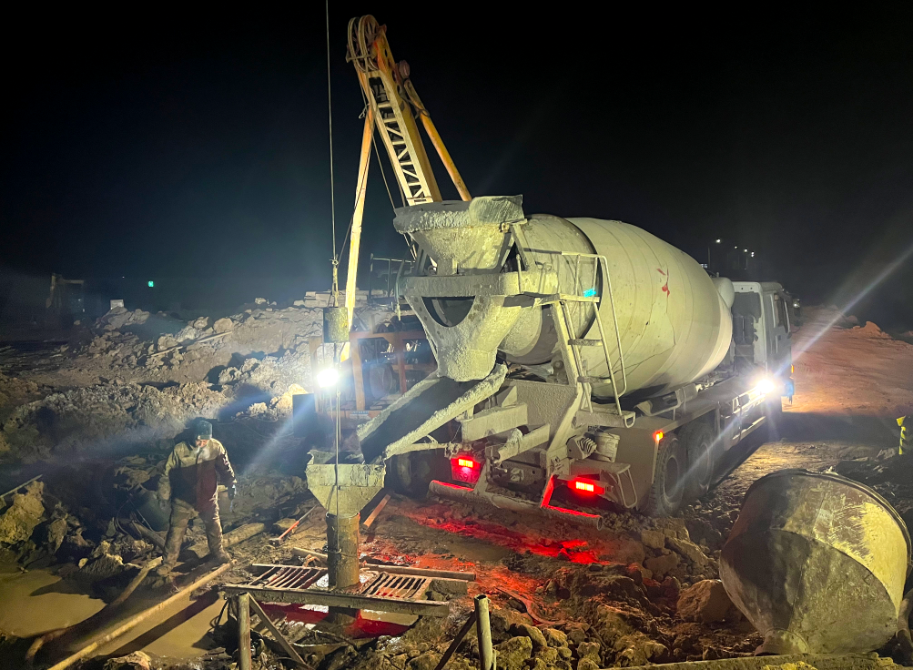 為了家鄉百姓早日走上踏實(shí)的橋面,錦州華地建設集團開(kāi)展夜間施工,鉆機不斷、澆筑不斷,燈火通明的黑夜里,譜寫(xiě)了錦州華地建設集團建設者緊抓工期的辛勤勞作。